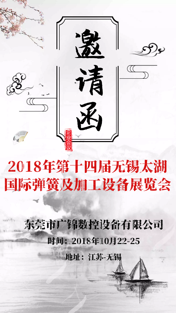 我公司將于10月22日一25日在無錫太湖國際博覽中心參加第十四屆無錫太湖國際彈簧及加工設(shè)備展覽會(huì)